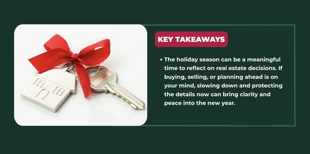 A real estate purchase or sale is one of the most significant financial decisions you’ll make even during the holidays.