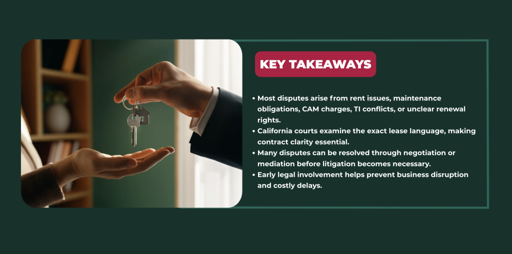 Commercial leases are the backbone of California businesses yet even the strongest agreements can unravel when expectations, responsibilities, or financial pressures shift. Whether you’re a landlord protecting your investment or a tenant trying to maintain operations, commercial lease disputes can escalate quickly without clear guidance.